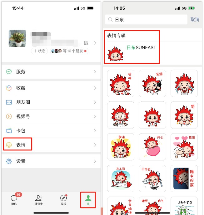 第一步:點擊“我”,搜過表情“日東”
