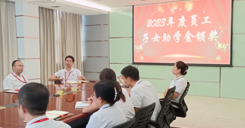 為深入貫徹落實公司“共創(chuàng)、共享、共承、共傳”的價值觀,對員工及其家屬表達人文關(guān)懷,公司自2022年起制定“員工子女助學(xué)金”獎項,為當(dāng)年度考上一本及以上院校的員工子女進行一次性獎勵發(fā)放。2023年08月31日下午16:30,2023年度員工子女助學(xué)金頒獎在A棟五樓一號會議室進行。