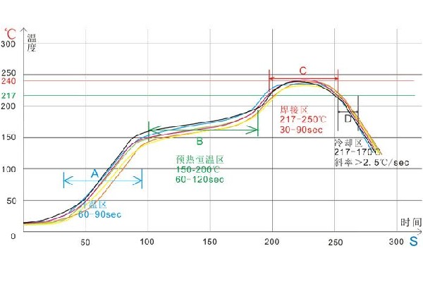 預(yù)熱區(qū):預(yù)熱區(qū)的溫度從室溫升至150度,升溫斜率應(yīng)控制在2度/秒,升溫時間60~150秒;