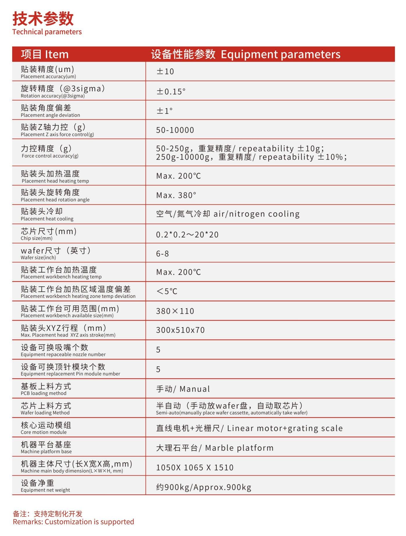 預燒結貼合機面向功率半導體芯片貼裝市場,配備功能更加強大的BONDHEAD系統,除了高精度貼合功能外,還具備保壓、加熱功能。配合高精度的加熱系統,實現電子元器件的預燒結貼合。
